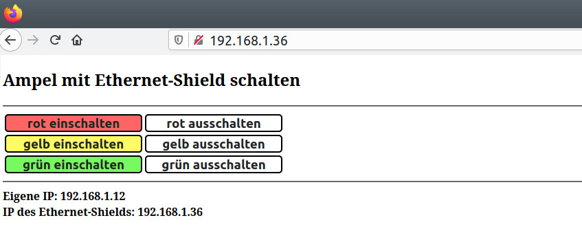 Ampel mit einem Ethernet-Shield schalten