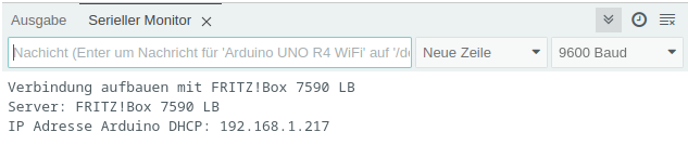 Im Seriellen Monitor wird die verwendete IP-Adresse angezeigt. Diese musst du in einem Browser deiner Wahl eingeben.