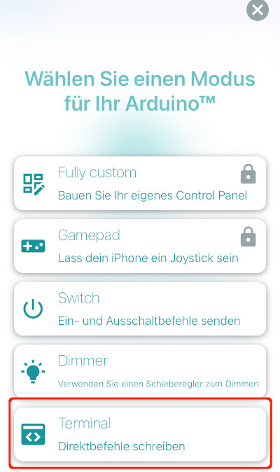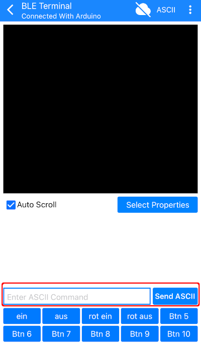 1 2 3 4 5 6 7 8 9 10 11 12 13 14 15 16 17 18 19 20 21 22 23 24 25 26 27 28 29 30 31 32 33 34 35 36 37 38 39 40 41 42 43 44 45 46 47 48 49 50 51 52 53 54 55 56 57 58 59 60 61 62 63 64 65 66 67 68 69 70 71 72 73 74 75 76 77 78 79 80 81 82 | #include “ArduinoBLE.h” /* eindeutige UUID bestimmen: https://www.guidgenerator.com/online-guid-generator.aspx https://www.uuidgenerator.net/ BLERead | BLEWrite | BLENotify -> schreiben, lesen, Info */ // Name BLE-Service BLEService LEDSchalten(“19b10000-e8f2-537e-4f6c-d104768a1214”); BLEUnsignedCharCharacteristic Auswahl(“19b10000-e8f2-537e-4f6c-d104768a1214”, BLERead | BLEWrite | BLENotify); void setup() { Serial.begin(9600); // auf serielle Verbindung warten while (!Serial); delay(1000); // pinMode festlegen pinMode(LED_BUILTIN, OUTPUT); // BLE starten if (!BLE.begin()) Serial.println(“Bluetooth-Modul konnte nicht gestartet werden!”); else Serial.println(“Bluetooth-Modul erfolgreich gestartet!”); // Name festlegen (wird in der App angezeigt) und den Service (LEDSchalten) zuweisen BLE.setLocalName(“LED schalten”); BLE.setAdvertisedService(LEDSchalten); // Auswahl als Platzhalter für den in der App gewählten Wert LEDSchalten.addCharacteristic(Auswahl); // Service LEDSchalten hinzufügen BLE.addService(LEDSchalten); // Startwert für die Kommunikation schreiben Auswahl.writeValue(0); // Zuweisung starten BLE.advertise(); } void loop() { // auf die Verbindung zu Geräten warten BLEDevice Verbindung = BLE.central(); // wenn der ESP32 mit einem Gerät verbunden ist … if (Verbindung) { Serial.println(“Verbunden … ”); // solange der Controller mit einem Gerät verbunden ist … while (Verbindung.connected()) { if (Auswahl.written()) { // LED einschalten if (Auswahl.value() == ‘1’) { Serial.print(char(Auswahl.value())); Serial.println(“ -> LED ein”); digitalWrite(LED_BUILTIN, HIGH); } // LED ausschalten if (Auswahl.value() == ‘0’) { Serial.print(char(Auswahl.value())); Serial.println(F(“ -> LED aus”)); digitalWrite(LED_BUILTIN, LOW); } } } } } |