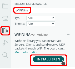 Installiere zunächst die benötigte Bibliothek WiFiNINA: