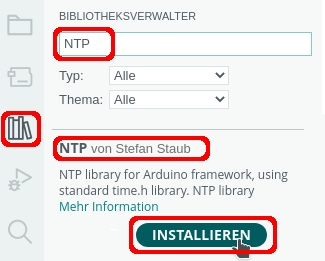 1 2 3 4 5 6 7 8 9 10 11 12 13 14 15 16 17 18 19 20 21 22 23 24 25 26 27 28 29 30 31 32 33 34 35 36 37 38 39 40 41 42 43 44 45 46 47 48 49 50 51 52 53 54 55 56 57 58 59 60 61 62 63 64 65 66 67 68 69 70 71 72 73 74 75 76 77 78 79 80 81 82 83 84 85 86 87 88 89 90 91 92 93 94 | #include “WiFiS3.h” #include “NTP.h” // SSID und Passwort des Routers char Router[] = “Router_SSID”; char Passwort[] = “xxxxxxxx”; WiFiServer WiFiServer(80); WiFiClient WiFiClient; WiFiUDP wifiUdp; NTP ntp(wifiUdp); void setup() { Serial.begin(9600); while (!Serial); delay(1000); // Verbindung aufbauen WiFi.begin(Router, Passwort); while(WiFi.status() != WL_CONNECTED) { delay(500); Serial.print(“.”); } Serial.print(“Verbindung aufbauen mit ”); Serial.println(Router); // Webserver starten WiFiServer.begin(); /* Zeitzone CEST: Central European Summertime Beginn europäische Sommerzeit letzter Sonntag im März 2 Uhr GMT + 2 Stunden */ ntp.ruleDST(“CEST”, Last, Sun, Mar, 2, 120); // CET: Central European Time // Beginn Normalzeit letzter Sonntag im Oktober 3 Uhr GMT + 1 Stunde ntp.ruleSTD(“CET”, Last, Sun, Oct, 3, 60); // ntp starten ntp.begin(); } void loop() { // Zeit aktualisieren ntp.update(); /* Zeit mit formatedTime() anzeigen: %d = Tag, %m = Monat, %Y = Jahr, %T = Zeit in Stunden, Minuten, Sekunden Wochentag anzeigen */ switch (ntp.weekDay()) { case 0: Serial.print(“Sonntag”); break; case 1: Serial.print(“Montag”); break; case 2: Serial.print(“Dienstag”); break; case 3: Serial.print(“Mittwoch”); break; case 4: Serial.print(“Donnerstag”); break; case 5: Serial.print(“Freitag”); break; case 6: Serial.print(“Samstag”); break; } Serial.print(“, ”); Serial.println(ntp.formattedTime(“%d.%m.%Y Uhrzeit: %T”)); delay(1000); } |