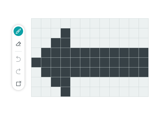 1 2 3 4 5 6 7 8 9 10 11 | byte PfeilLinks[8][12] = { { 0, 0, 0, 0, 0, 0, 0, 0, 0, 0, 0, 0 }, { 0, 0, 0, 1, 0, 0, 0, 0, 0, 0, 0, 0 }, { 0, 0, 1, 1, 0, 0, 0, 0, 0, 0, 0, 0 }, { 0, 1, 1, 1, 1, 1, 1, 1, 1, 1, 1, 1 }, { 1, 1, 1, 1, 1, 1, 1, 1, 1, 1, 1, 1 }, { 0, 1, 1, 1, 1, 1, 1, 1, 1, 1, 1, 1 }, { 0, 0, 1, 1, 0, 0, 0, 0, 0, 0, 0, 0 }, { 0, 0, 0, 1, 0, 0, 0, 0, 0, 0, 0, 0 } }; |