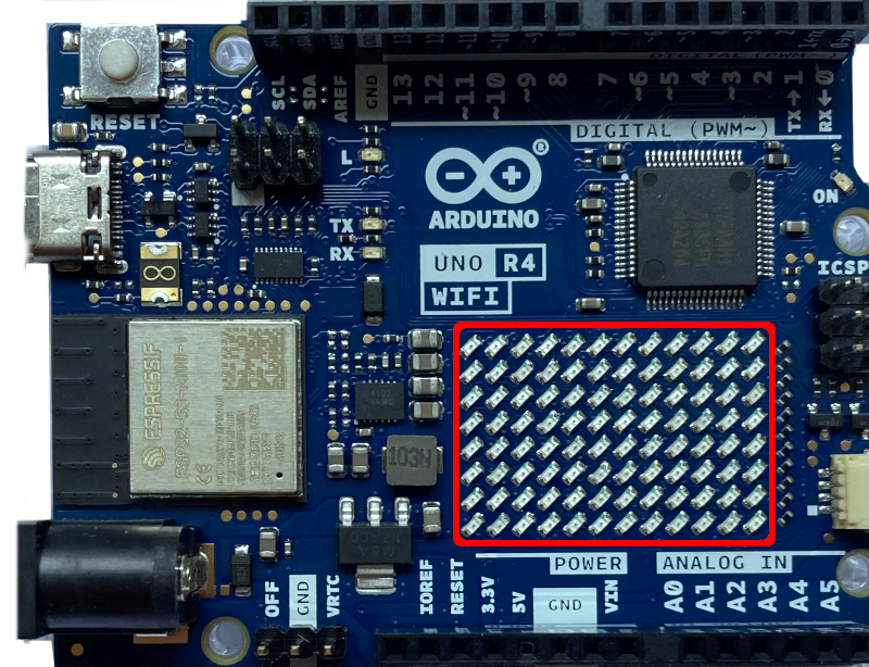Auf dem Board befindet sich zusätzlich eine 12x8 große LED-Matrix.