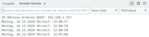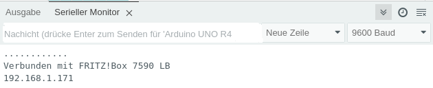 Im Seriellen Monitor wird die IP des Arduino UNO R4 angezeigt.
