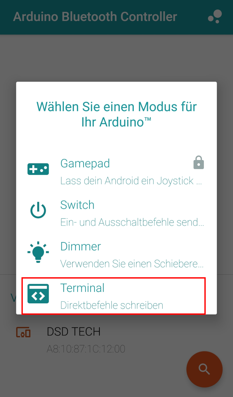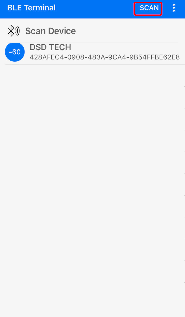 BLE Ter­mi­nal (Android)Arduino Blue­tooth Con­troller (Android)Blue­tooth for Arduino (iOS)BLE­Se­r­i­al tiny (iOS)DSD-Tech (iOS)