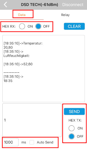 Messdaten des DHT in einer Bluetooth-App anzeigen