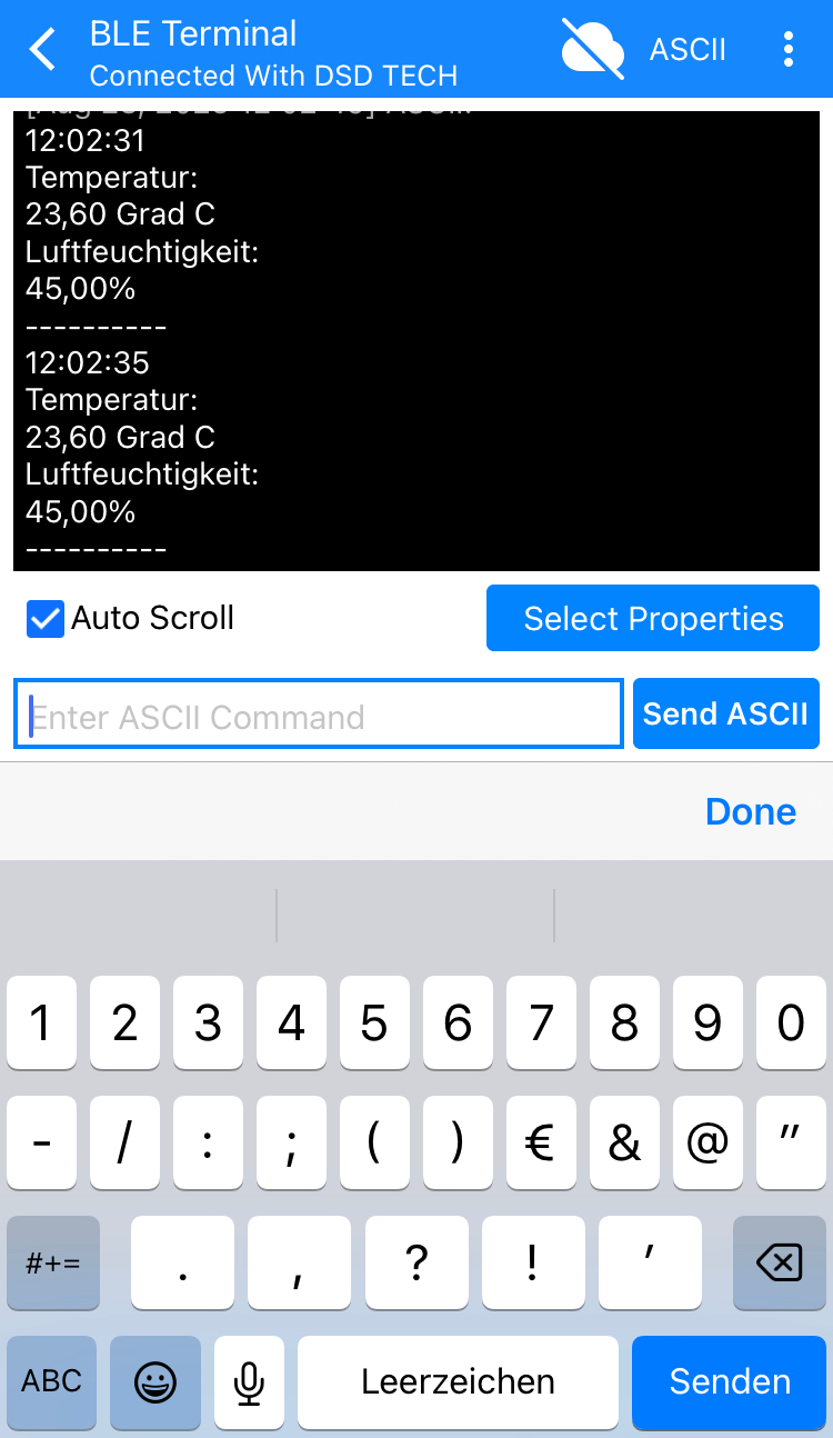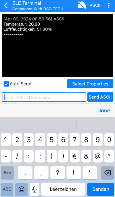 Daten mit der App “BLE Terminal” (iOS) anzeigen