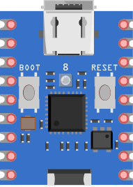 Auf dem Board ist eine RGB-LED ver­baut, sie kann mit Hil­fe ein­er Bib­lio­thek ange­sprochen wer­den.