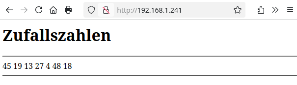 Das Pro­gramm zeigt im Brows­er 6 Zufall­szahlen an.