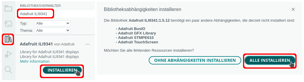 Wenn du stattdessen die Adafruit-Bibliotheken verwenden willst: