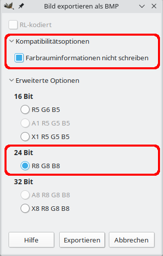 - Fotos ins bmp-Format und ins 24-Bit-Format konvertieren