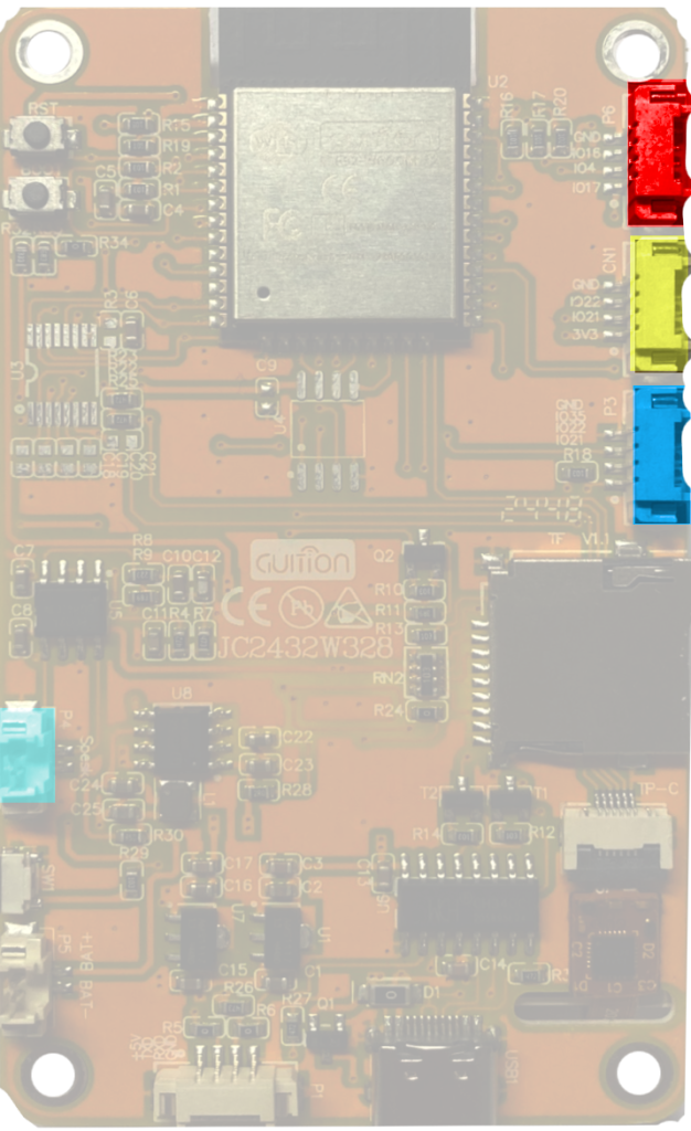 Beim ESP32-JC2432W328 wurde der Pin für die Hintergrundbeleuchtung auf Pin 27 gesetzt. Daher können die Standard-I²C-Pins verwendet werden.