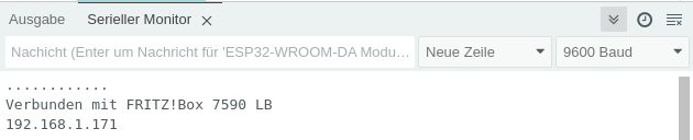 Im Seriellen Monitor wird die mit DHCP ermittelte IP des ESP32-Wroom angezeigt.