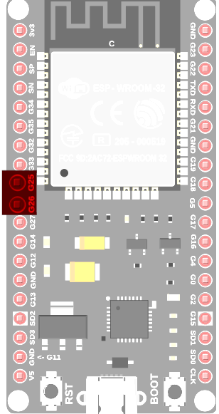 1 2 3 4 5 6 7 8 9 10 11 12 13 14 15 16 17 18 19 20 21 22 | void setup() { // kein setup notwendig } void loop() { // LED an Pin 25 // Helligkeit in 5er ‑Schritten erhöhen for (int i = 50; i < 255; i+=5) { dacWrite(25, i); delay(20); } // Helligkeit in 5er-Schritten verringern for (int i = 255; i > 50; i-=5) { dacWrite(25, i); delay(20); } } |