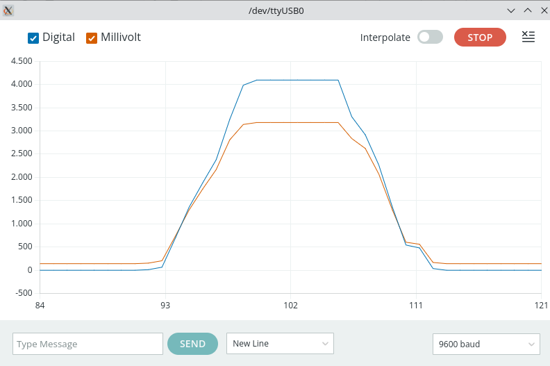 Ausgabe im Seriellen Plotter bei der Drehung des Potentiometers