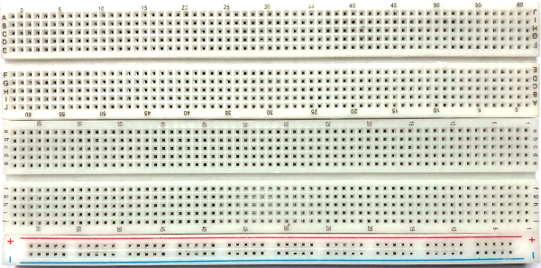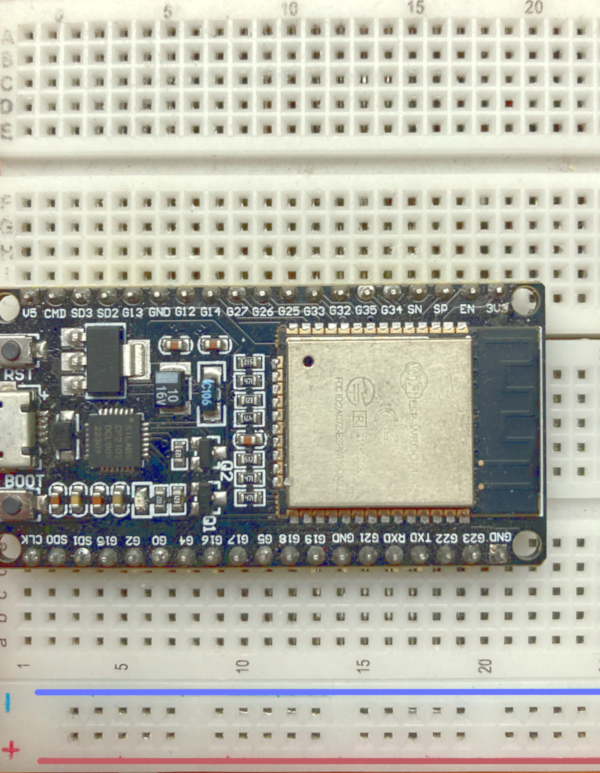 Leider ist der ESP32-Wroom nicht “steckbretttauglich”. Ich habe daher zwei Steckbretter zu einem zusammengefügt. Es ist wichtig, dass auf einer Seite die Plus- und Minusleiste erhalten bleibt.