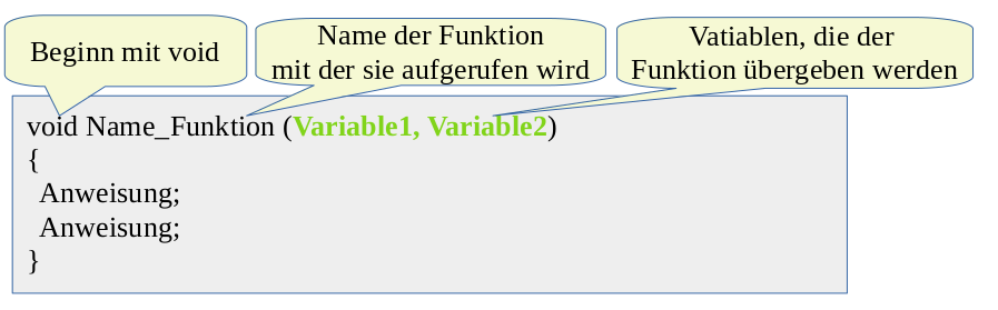 Soll die Funktion nur eine Abfolge von Befehlen erledigen, muss sie mit dem Schlüsselwort void eingeleitet werden.