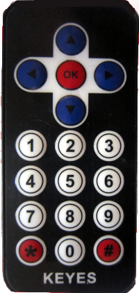 1 2 3 4 5 6 7 8 9 10 11 12 13 14 15 16 17 18 19 20 21 22 23 24 25 26 27 28 29 30 31 32 33 34 35 36 37 38 39 40 41 42 43 44 45 46 47 48 49 50 51 52 53 54 55 56 57 58 59 60 61 62 63 64 | // benötigte Bibliothek einbinden #include "IRremote.hpp" // der Pin, an dem der Infrarot-Empfänger angeschlossen ist int EmpfaengerPin = 2; void setup() { // Seriellen Monitor starten Serial.begin(9600); // Infrarot-Empfänger starten IrReceiver.begin(EmpfaengerPin); } void loop() { // decode() -> Daten lesen if (IrReceiver.decode()) { // kurzes delay, damit nur ein Tastendruck gelesen wird delay(200); // resume -> nächsten Wert lesen IrReceiver.resume(); /* der Empfänger empfängt zwischendurch Signale, die nicht ausgewertet werden können es sollen deshalb nur die korrekt erkannten Tasten ausgewertet werden die Dezimalwerte der korrekten erkannten Tasten liegen zwischen > 0 und < 95 es wird abgefragt, ob das empfangene Kommando decodedIRData.command zwischen 0 und (&&) 95 liegt */ if (IrReceiver.decodedIRData.command > 0 && IrReceiver.decodedIRData.command < 95) { Serial.print("Dezimalwert: "); // IrReceiver.decodedIRData.command = Wert der gedrückten Taste Serial.print(IrReceiver.decodedIRData.command); Serial.print(" -> "); // Werte abfragen und anzeigen if (IrReceiver.decodedIRData.command == 22) Serial.println("Taste 1"); if (IrReceiver.decodedIRData.command == 25) Serial.println("Taste 2"); if (IrReceiver.decodedIRData.command == 13) Serial.println("Taste 3"); if (IrReceiver.decodedIRData.command == 12) Serial.println("Taste 4"); if (IrReceiver.decodedIRData.command == 24) Serial.println("Taste 5"); if (IrReceiver.decodedIRData.command == 94) Serial.println("Taste 6"); if (IrReceiver.decodedIRData.command == 8) Serial.println("Taste 7"); if (IrReceiver.decodedIRData.command == 28) Serial.println("Taste 8"); if (IrReceiver.decodedIRData.command == 90) Serial.println("Taste 9"); if (IrReceiver.decodedIRData.command == 82) Serial.println("Taste 0"); if (IrReceiver.decodedIRData.command == 66) Serial.println("Taste *"); if (IrReceiver.decodedIRData.command == 74) Serial.println("Taste #"); if (IrReceiver.decodedIRData.command == 68) Serial.println("Pfeil links"); if (IrReceiver.decodedIRData.command == 67) Serial.println("Pfeil rechts"); if (IrReceiver.decodedIRData.command == 70) Serial.println("Pfeil oben"); if (IrReceiver.decodedIRData.command == 21) Serial.println("Pfeil unten"); if (IrReceiver.decodedIRData.command == 64) Serial.println("OK"); } } } |