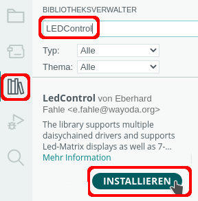 Led­Con­trol Name_der_Matrix(Data-In, CLK, CS, AnzahlMa­trix)LED-Matrix ini­tial­isieren: