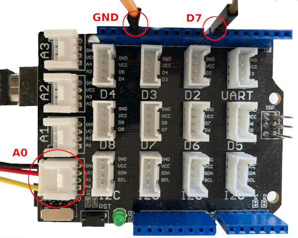 Wenn das Base-Shield nicht zur Verfügung steht oder ein Arduino in einem anderen Format verwendet wird, kann der Soundsensor auch direkt angeschlossen werden: