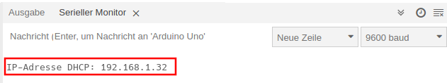 Im Seriellen Monitor wird die IP des Ethernet-Shields angezeigt. Diese Adresse wird in einem Browser eingegeben.