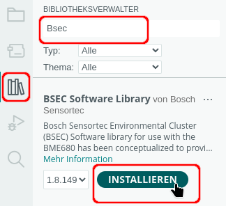 Die Programme funktioniert nur mit einem ESP32, es wird die properitäre, nicht quelloffene Bibliothek von Bosch verwendet.