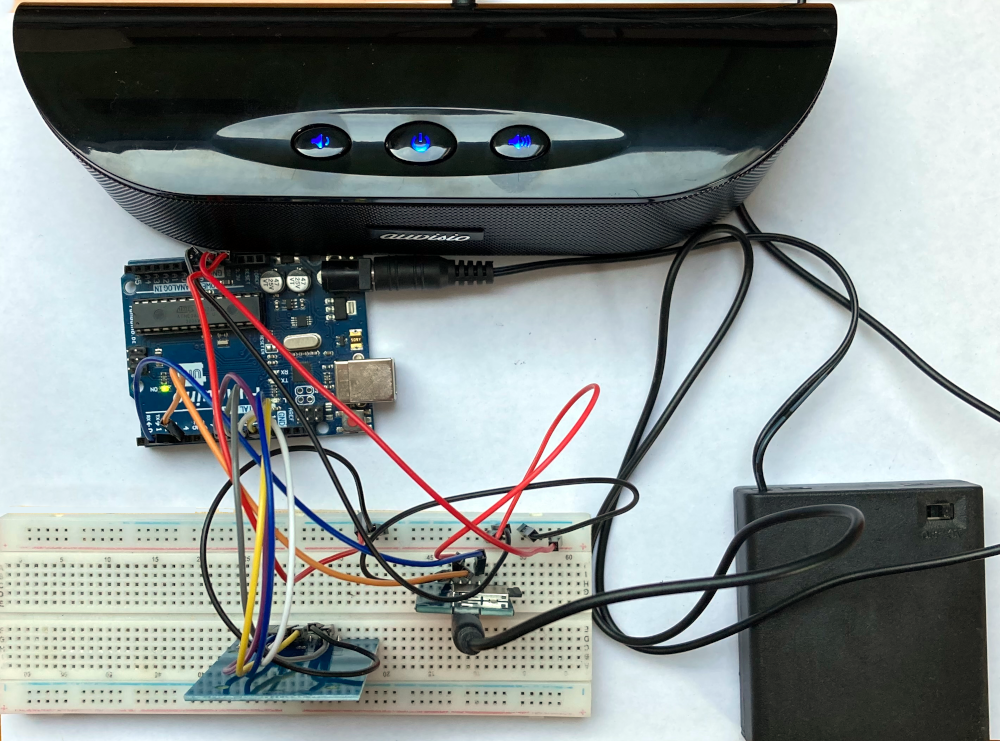 Der YX5300 ver­fügt über einen 3,5 mm Klinken­steck­er, die Musik wird von ein­er SD-Karte abge­spielt.