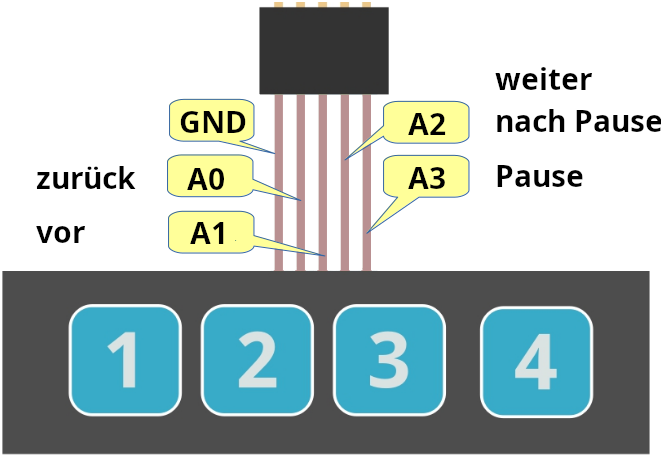 Der Player soll mit einem Tastenfeld mit vier Tasten oder mit einer Fernbedienung gesteuert werden.