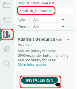 1 2 3 4 5 6 7 8 9 10 11 12 13 14 15 16 17 18 19 20 21 22 23 24 25 26 27 28 | #include “vs1053_SdFat.h” #include “Adafruit_Debounce.h” // Bezeichnung der SD-Karte SdFat sd; // Bezeichnung des mp3-Shields vs1053 MP3player; // Variable für das Lesen des Verzeichnisses File Verzeichnis; File Datei; // die Taster int TASTER1 = A0; // zurück int TASTER2 = A1; // weiter int TASTER3 = A2; // weiter nach Pause int TASTER4 = A3; // Pause // “Prallverhinderer” für die Tasten starten Adafruit_Debounce Taste_zurueck(TASTER1, LOW); Adafruit_Debounce Taste_naester(TASTER2, LOW); Adafruit_Debounce Taste_weiter(TASTER3, LOW); Adafruit_Debounce Taste_Pause(TASTER4, LOW); // Tracknummer/Anzahl der Tracks int Track = 1; int TrackMax = 0; |