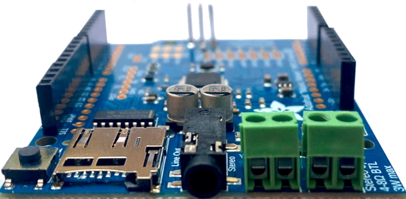 Das Shield verfügt über Line-Out und Schraubklemmen für Lautsprecher.