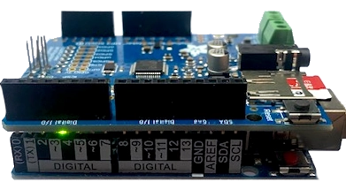 Das Shield wird auf den Arduino UNO aufgesteckt.