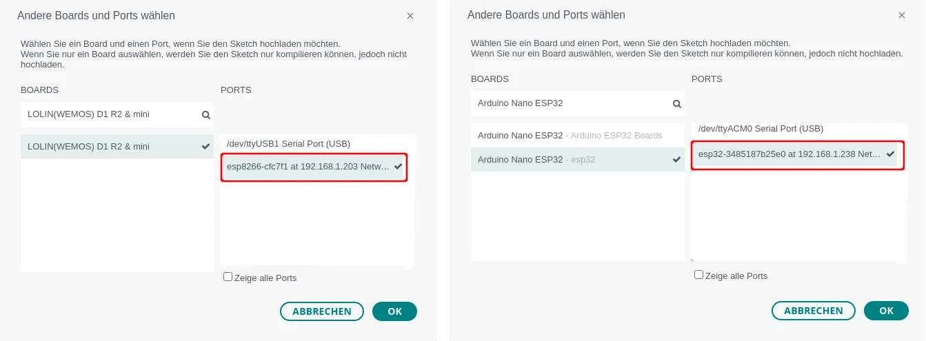 Nach dem Hochladen siehst du neben dem bisher verwendeten USB-Port den hinzugefügten Netzwerkport.