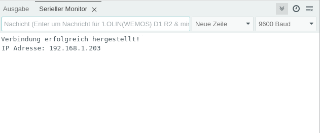 Im Seriellen Monitor siehst du die IP-Adresse mit der die Verbindung hergestellt wurde.
