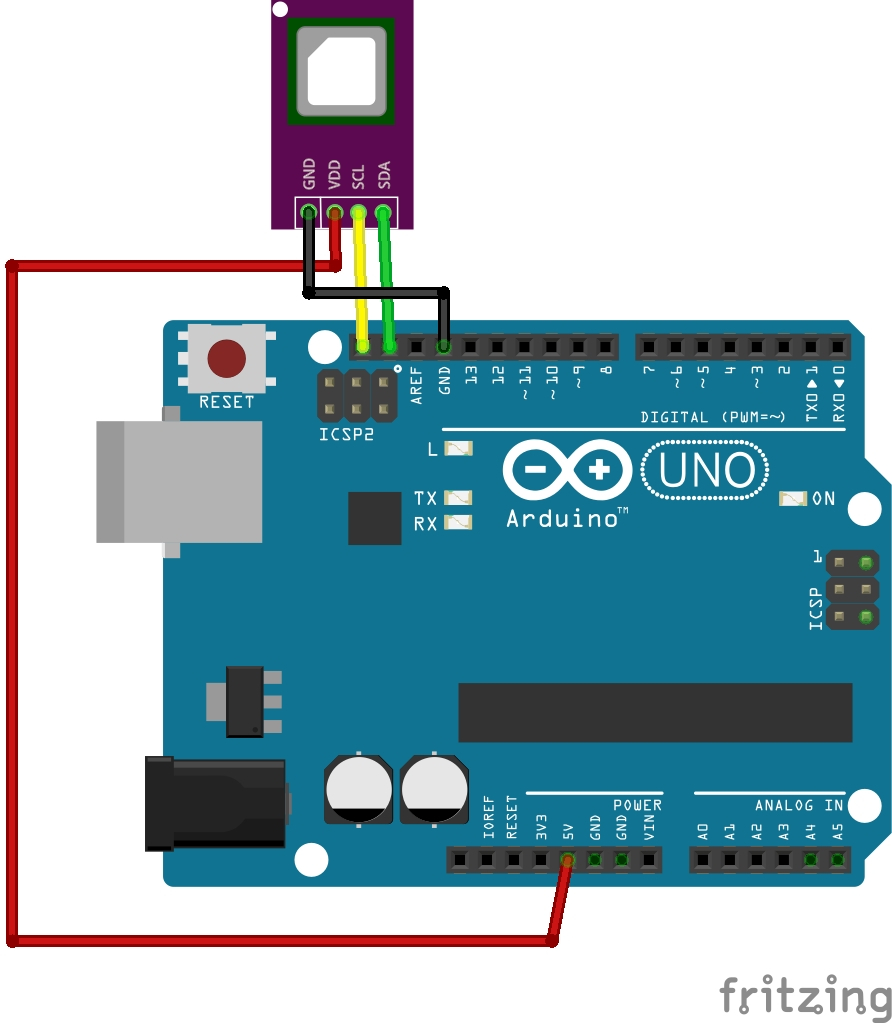 Die Anzeigemodule können an den anderen I²C-Pins A4 und A5 angeschlossen werden.