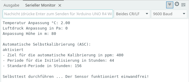 Neben der automatischen Kalibrierung kannst du alternativ mit performForcedRecalibration(CO2Richtwert, frcCorr)die Kalibrierung erzwingen. Hierzu wird ein Wert (CO2Richtwert) festgelegt, auf den kalibriert werden soll. frcCorr ist ein Kerrekturwert, der im Falle eines Misserfolgs 0xFFFF ausgibt.