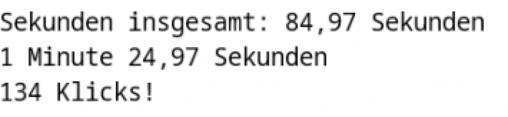 Wenn die äußere rechte Taste des Tastenpads gedrückt wird, zeigt der Serielle Monitor die benötigte Zeit und die Anzahl der Klicks an.