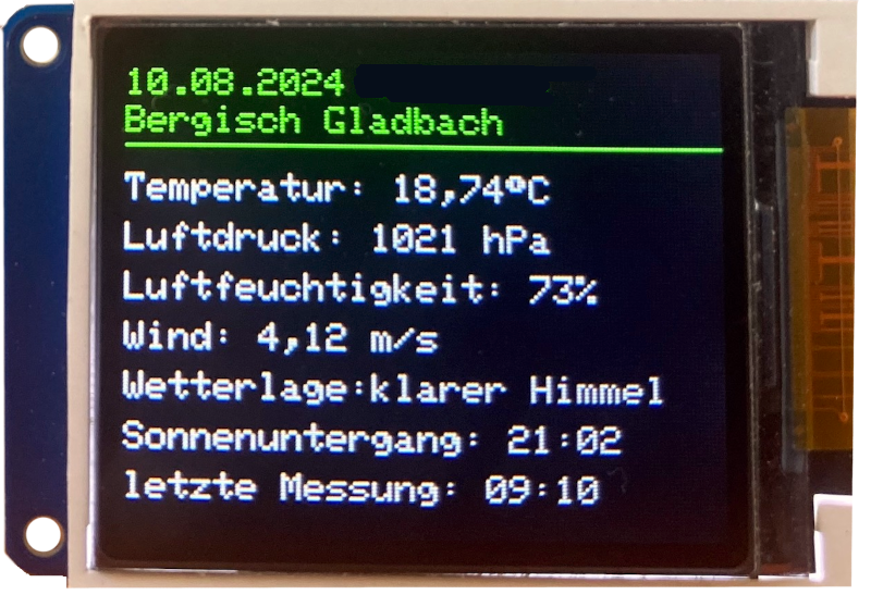 Wetterdaten von Openweather mit der API 3.0 auf einem TFT anzeigen