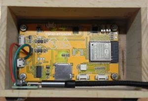 Für die­se Pro­jekt wird ein CYD (Cheap Yel­low Dis­play) ver­wen­det. Auf der Rück­sei­te des TFTs mit 2,8-Zoll und 320×240 Pixeln befin­den sich ein ESP32-Wroom, ein SD-Kar­ten-Modul, eine RGB-LED und Anschluss­mög­lich­kei­ten für Peri­phe­rie­ge­rä­te mit­hil­fe von JST-Ste­ckern.