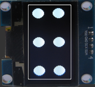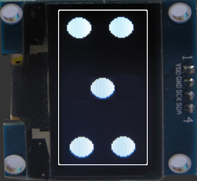 Damit die Wür­fe­lau­gen gut sicht­bar angezeigt wer­den, ist das OLED um 90° nach rechts gedreht.