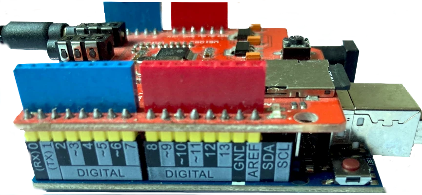 Das mp3-Shield wird auf den Arduino aufgesteckt.