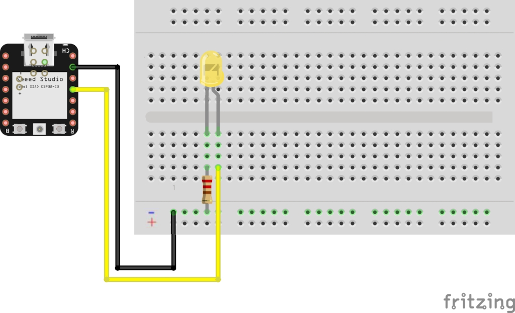 1 2 3 4 5 6 7 8 9 10 11 12 13 14 | int LED = D10; void setup() { pinMode(LED, OUTPUT); } void loop() { digitalWrite(LED, HIGH); delay(1000); digitalWrite(LED, LOW); delay(1000); } |