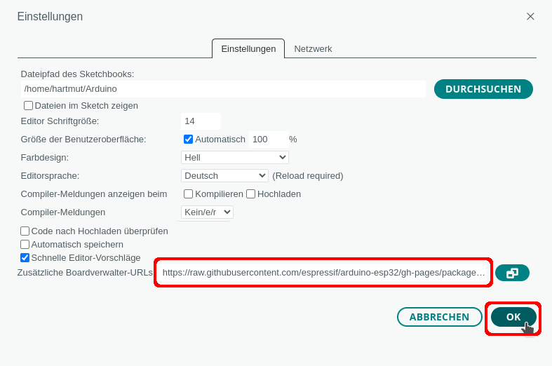 Trage unter Datei -> Einstellungen eine zusätzliche Boardverwalter-URL ein: