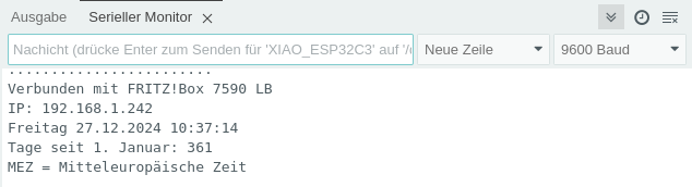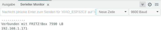 Im Seriellen Monitor wird die mit DHCP ermittelte IP des XIAO-ESP32-C3 angezeigt.